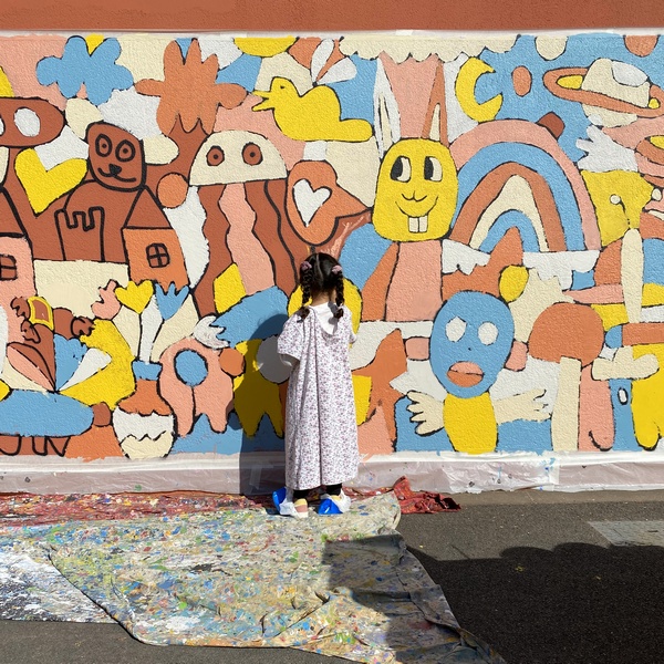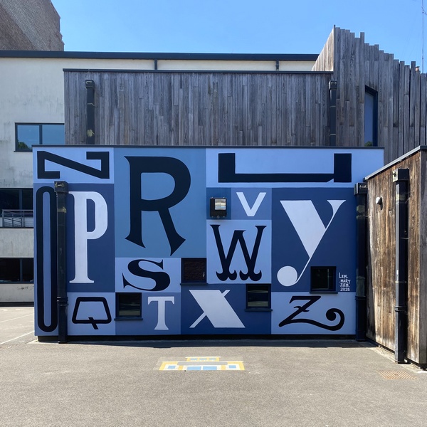 Voici les peintures murales réalisées au sein de la cour de récréation de l’école Thérèse d’Avila à Lille. Les 5 classes de maternelles ont participé au projet et tous les élèves ont mis la main à la pâte afin d’embellir leur cour de récréation. Deux fresques ont ainsi été effectuées, l’une colorée reprenant les dessins réalisés avec les enfants, tandis que l’autre symbolise un alphabet, les 26 lettres épousant l’architecture du bâtiment scolaire.